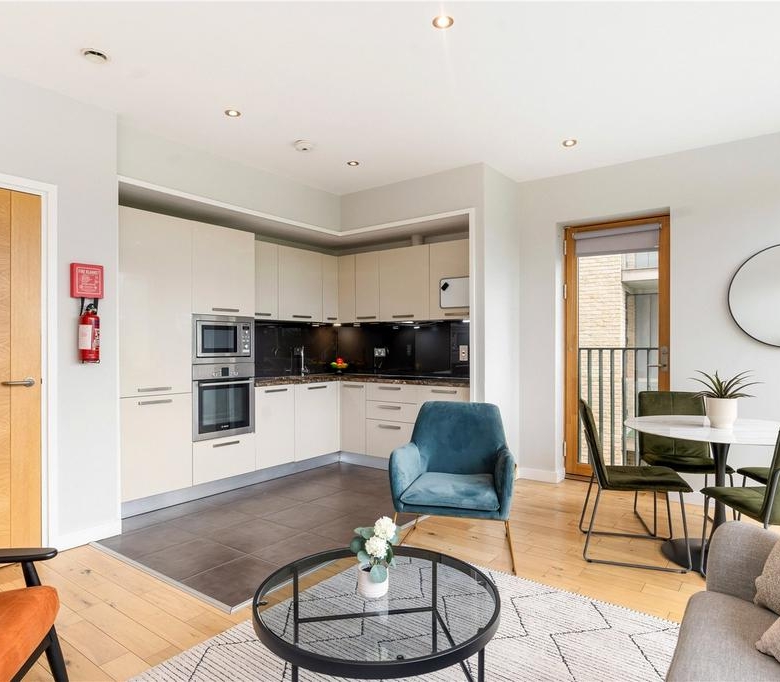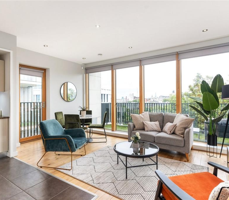 Contemporary one bedroom apartment with views overlooking Dublin city.