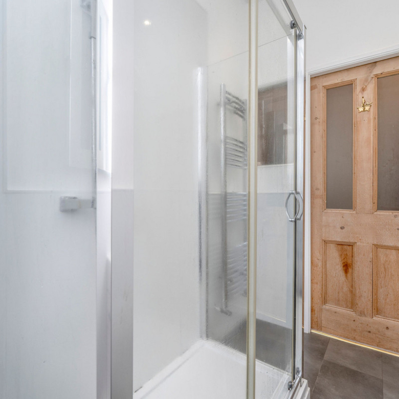 The east-facing double bedroom impresses with its generous proportions and tasteful interior design, while the contemporary shower room features a hidden cistern WC, a washbasin built into vanity, and a chrome towel radiator.