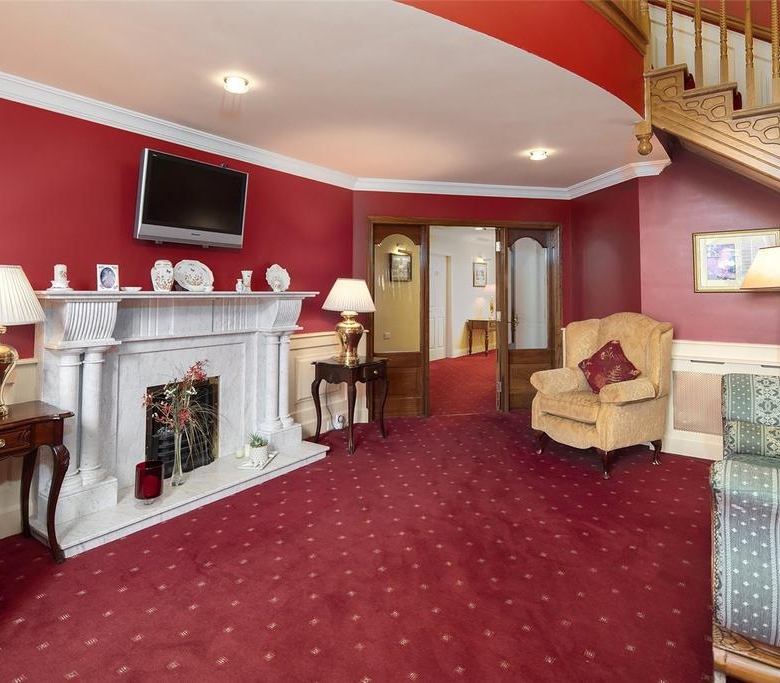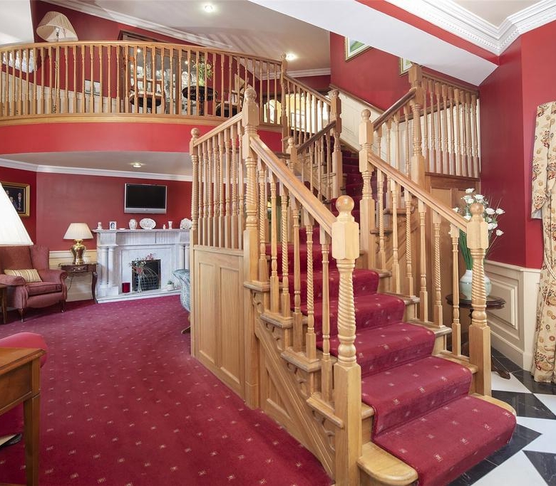 The primary entrance is buffered by a large entrance porch that opens into a luxurious and cavernous reception foyer with double height ceilings. This reception is an opulent space which provides for a superb solid oak staircase only matched in quality by the stunning marble fireplace in the heart of the room.