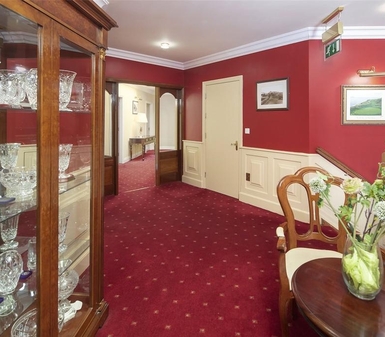 Returning to the reception room, a hallway brings you to the south wing of the property. Here you will find the remaining four double en-suite bedrooms on the ground floor, a cosy guest lounge and the breath-taking dining room.