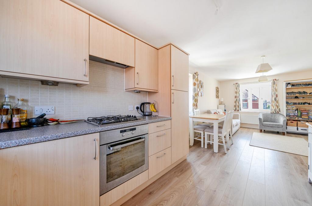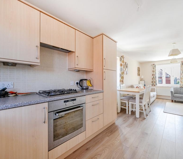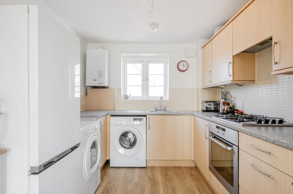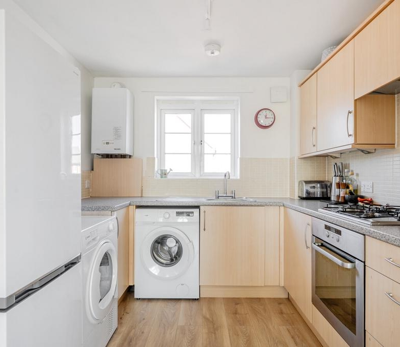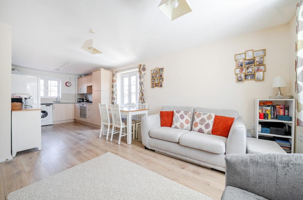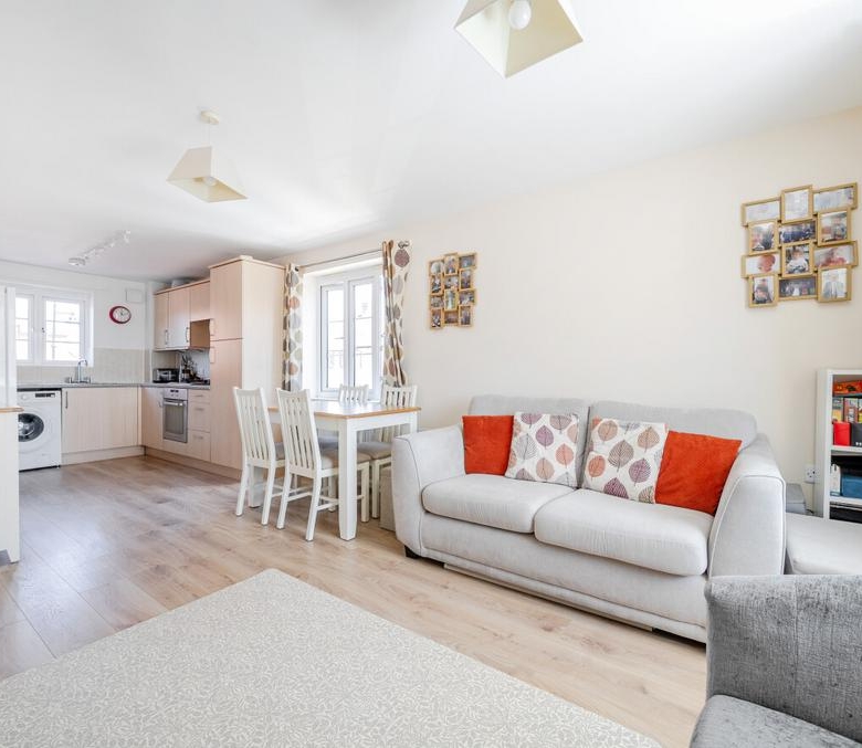 Featuring an open-plan living area, with dual-aspect windows. The kitchen has an integrated oven and gas hob. There are two comfortable bedrooms, with a wardrobe to bedroom one. The bathroom has a modern, white suite.