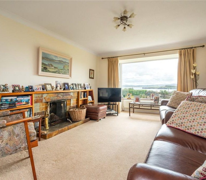 Internally, the accommodation is bright and well-proportioned, arranged across a single level to facilitate easy and comfortable lateral living. At the heart of the home is a spacious open-plan kitchen/living area, featuring a classic fireplace and a large picture window that perfectly frames the magnificent view. Off this space lies a sunroom, ideal for enjoying the ever-changing light and sea views in all seasons.