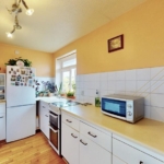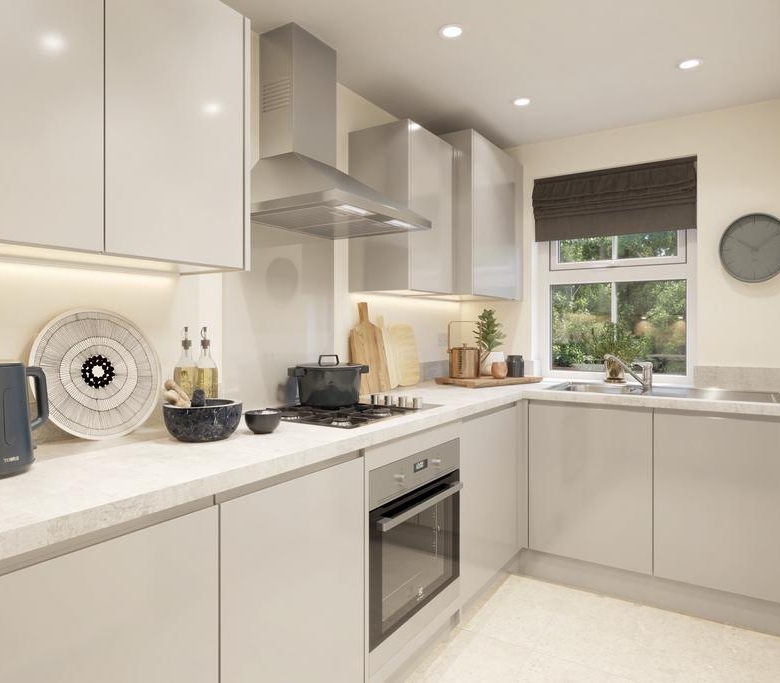 This home has a stylish fitted kitchen and a lounge with French doors to the garden. There’s also a cloakroom and some understairs storage. Upstairs you’ll find two double bedrooms, with more built in storage to the second bedroom, and a family bathroom. Comes with an electric car charging point and two parking spaces.