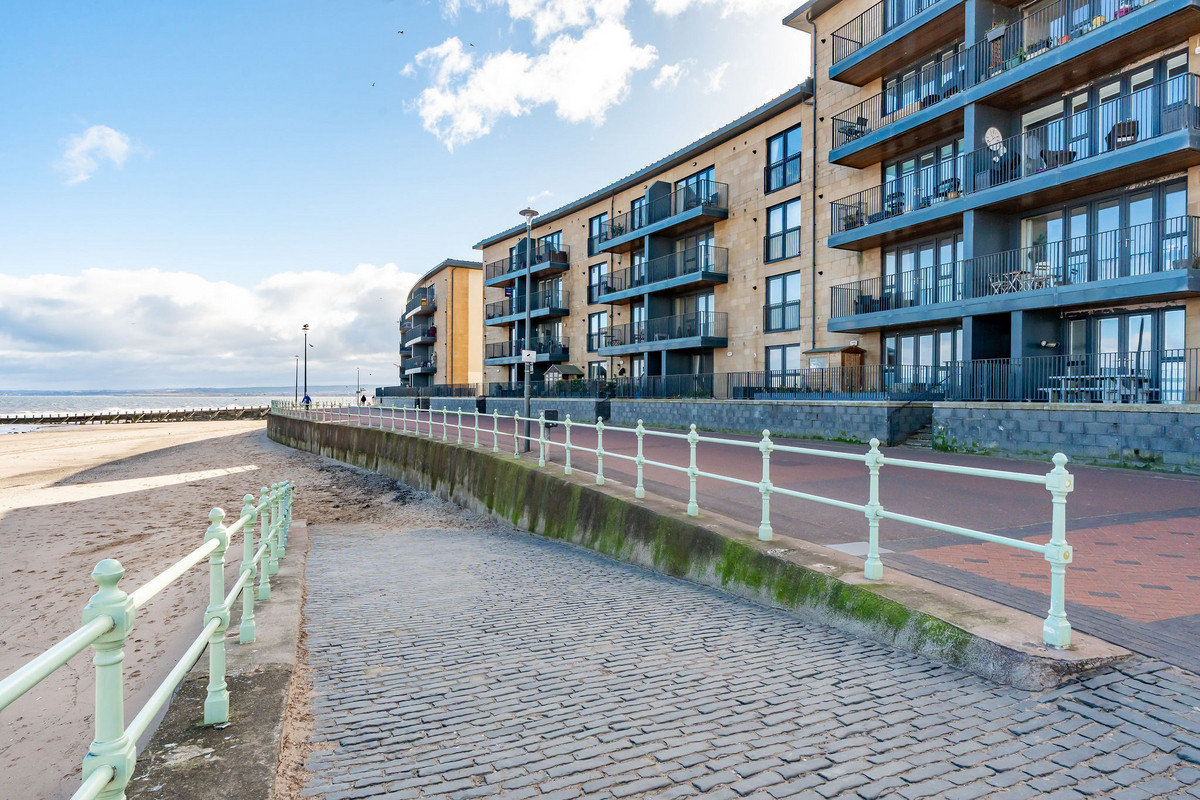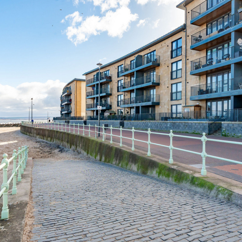 With a Juliet balcony offering views over Portobello Beach, the second double bedroom provides a peaceful retreat. Built-in mirrored wardrobes add useful storage space.