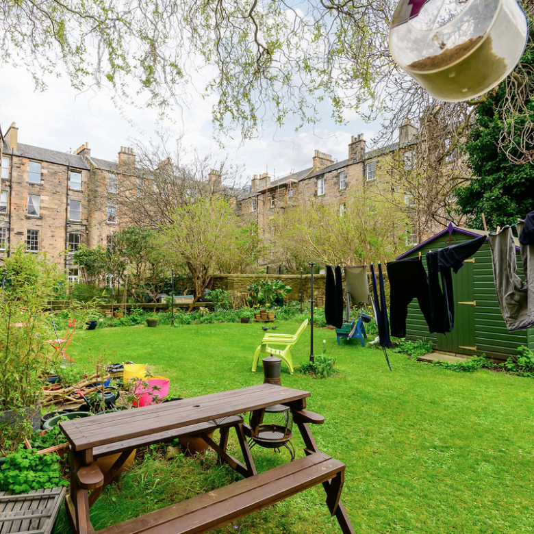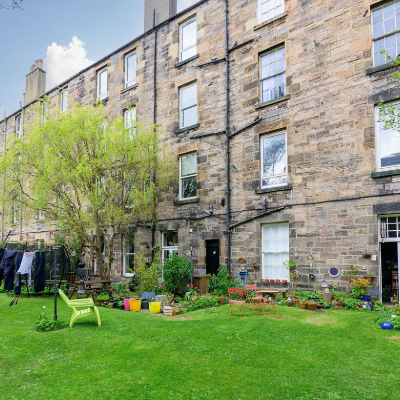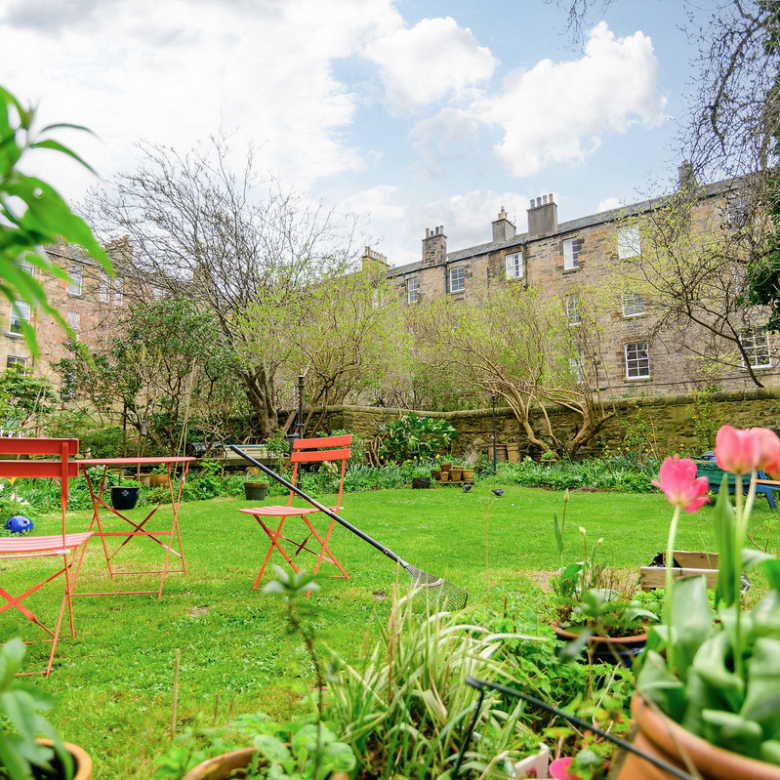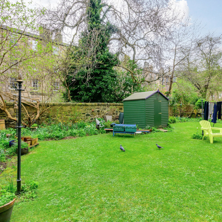 Externally the enclosed south-facing shared rear garden is meticulously maintained and with a drying green, pretty borders, and seating areas is an idyllic retreat.