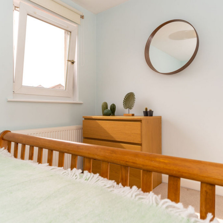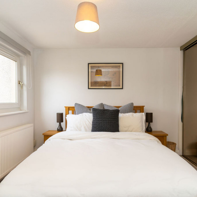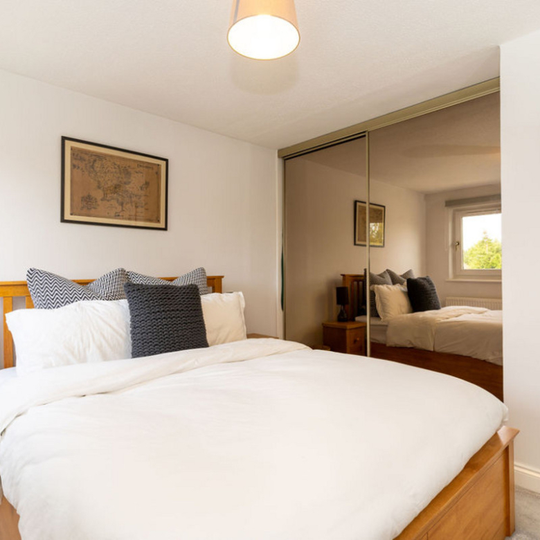 Upstairs, the master bedroom can be found which includes a built-in wardrobe and allows for a king size bed, bedside tables and chest of drawers. The second bedroom is another good size and can occupy a king size bed and chest of drawers. There is the opportunity to use this room as a home office.