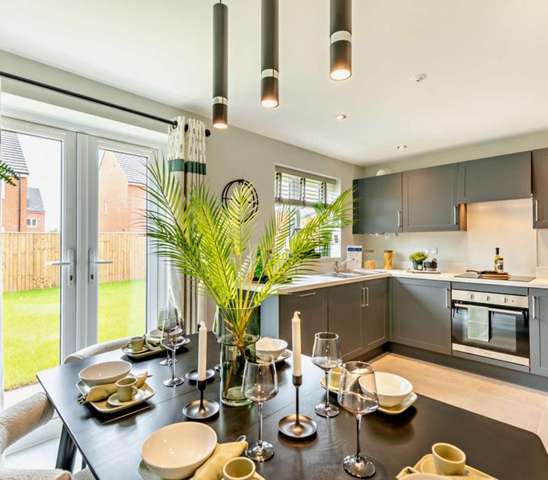 Designed for modern life, the Knightsbridge is a 818 sq. ft contemporary three-bedroom home with lots of character. Off the hallway, you’ll find the spacious lounge, the perfect place for relaxing. Head towards the rear of the home, past the downstairs WC, and you’ll enter the social hub of the home. The stylish and modern kitchen/diner, with French doors leading straight onto the garden, it’s an amazing space everyone will love spending quality time in. And for those who cherish their own space, there are three bedrooms upstairs. The master bedroom has an en suite, and the second double bedroom is versatile, with room for bunk beds if you need them. The third bedroom, family bathroom and storage cupboard complete the floor. Tenure: Freehold. Council tax: Determined by your local authority. Estate management fee: £319.83 per annum determined by plot, with a further charge of either £29.69 or £27.11 dependant on the property sharing a driveway.