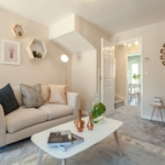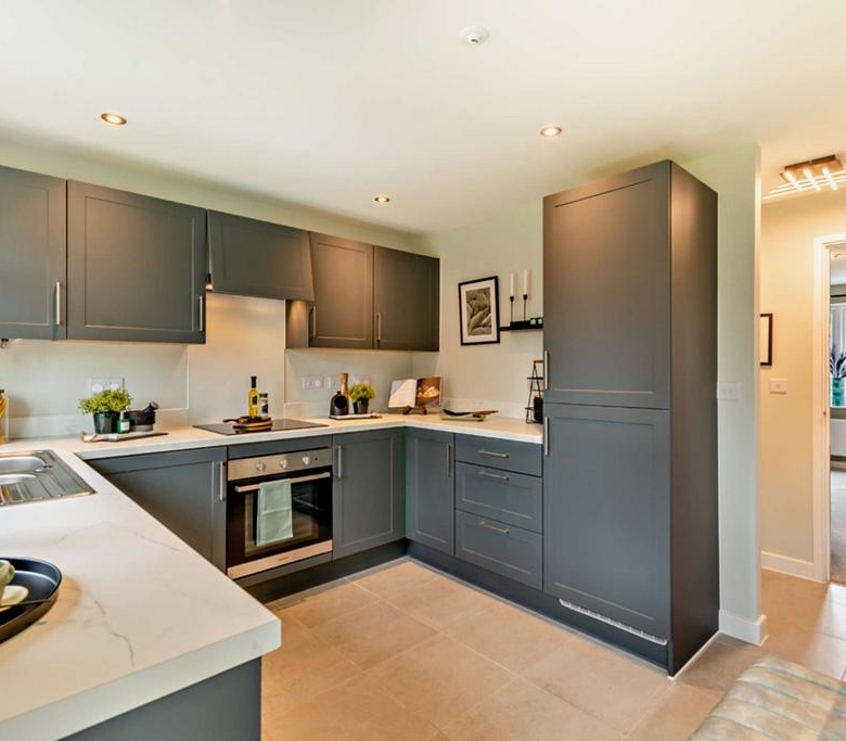 Designed for modern life, the Knightsbridge is a 818 sq. ft contemporary three-bedroom home with lots of character. Off the hallway, you’ll find the spacious lounge, the perfect place for relaxing. Head towards the rear of the home, past the downstairs WC, and you’ll enter the social hub of the home. The stylish and modern kitchen/diner, with French doors leading straight onto the garden, it’s an amazing space everyone will love spending quality time in. And for those who cherish their own space, there are three bedrooms upstairs. The master bedroom has an en suite, and the second double bedroom is versatile, with room for bunk beds if you need them. The third bedroom, family bathroom and storage cupboard complete the floor. Tenure: Freehold. Council tax: Determined by your local authority. Estate management fee: £319.83 per annum determined by plot, with a further charge of either £29.69 or £27.11 dependant on the property sharing a driveway.