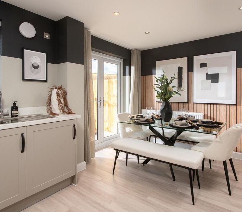 This home has a lounge with space to work from home, an open plan kitchen and French doors to the garden. There’s also a downstairs cloakroom and some understairs storage. Upstairs you’ll find an en suite main bedroom, a further double bedroom, a single and the family bathroom. 3 parking spaces complete this home.