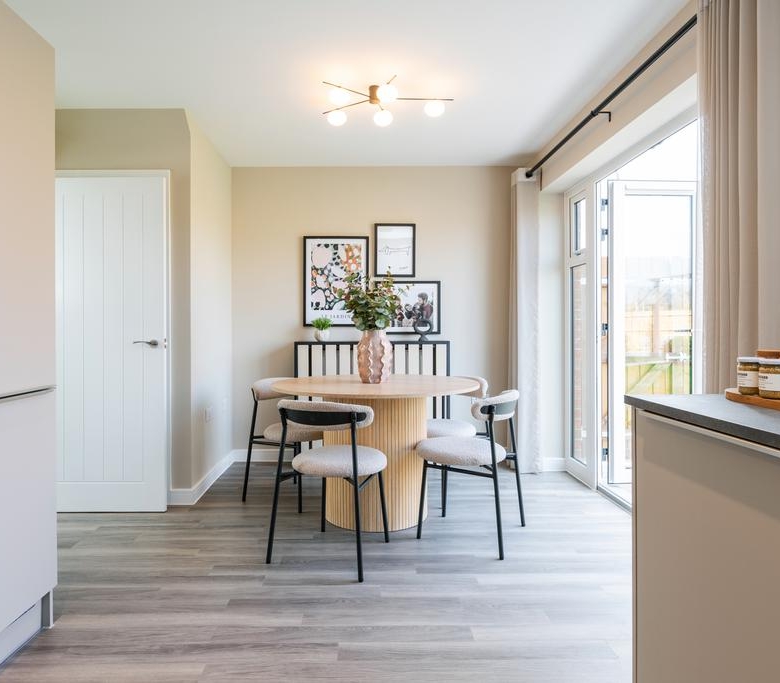 The open-plan kitchen and dining area is the key feature of The Chandler, with an attractive U-shaped layout and plenty of space for a dining table to seat everyone. French doors from the dining area open onto the rear garden, providing delightful views and also making it easy to keep an eye on little ones playing outside.