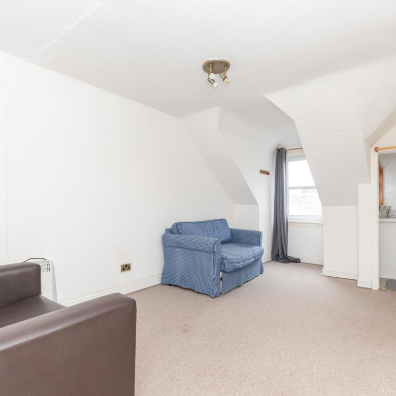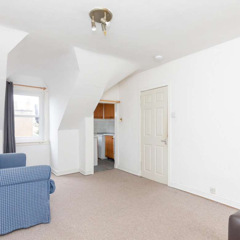 The bedroom offers a view over the hight street and can occupy a queen size bed and wardrobe. There is also a shared garden to the rear of the building. This property would be best suited for a first time buyer or as an investment due to the high demand in rental properties in Portobello. It would benefit from slight renovation.