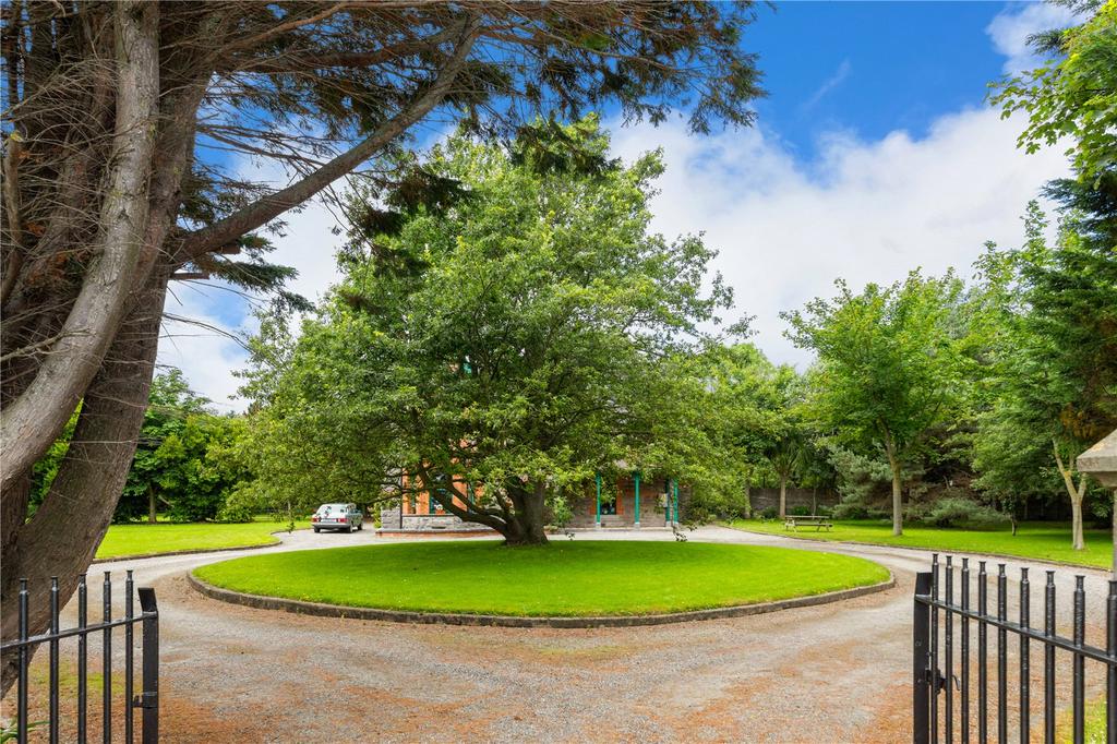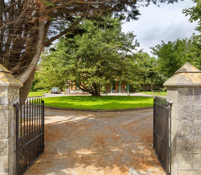 Set back from the road, The Old Vicarage is approached through limestone pillars with pyramid-shaped tops and wrought-iron gates, sitting quietly in peaceful gardens just a short walk from the sea and Rush.