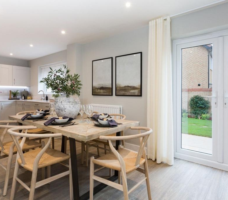 PRIME POSITION PLUS GARAGE & 3 PARKING SPACES!Home 30, The Pembroke with its spacious living areas, aspects of open plan living and considerable light, is a beautiful home, perfectly designed for the flow of family life. The kitchen/dining room which stretches across the broad width of the property will quickly become the heart of your home. This flexible space creates a spacious area in which to eat, entertain or relax and benefits from French Doors leading into the facing garden. The living room is similarly bright thanks to an attractive square bay. A study on the ground floor creates the perfect space in which to work from home with ease. Upstairs are four double bedrooms with an en suite in addition to a family bathroom. The Pembroke is a sociable home with excellent connectivity, both between rooms and between the interior and exterior. Outside you will find a garage and driveway with parking. This home is EPC energy rated A and benefits from PV solar panels, an electric vehicle charging point and a waste-water heat recovery system.