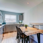 At the heart of the home is a spacious open plan kitchen/dining area: a flexible space with French doors providing access to the garden. A separate living room is a bright and airy space due to the large window.
