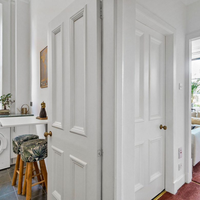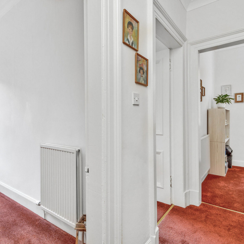 A delightful garden boasting a lawn and established planting welcomes you to the shared front door and foyer where a private ground-floor entrance opens into a carpeted hallway.