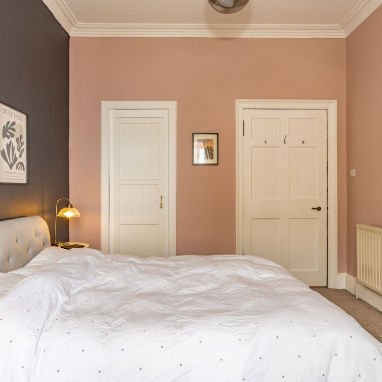 With a lovely rear garden outlook, the second carpeted south-facing double bedroom opposite the principal offers a generous footprint, a light and airy feel, and a tasteful interior.