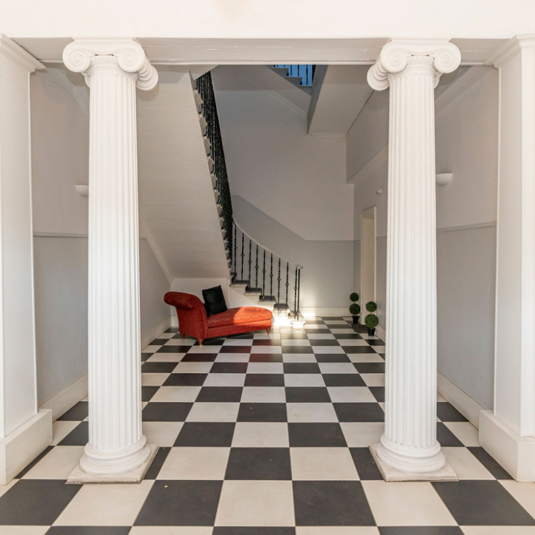 Upon entering the generous shared entrance hall with its monochrome flooring and Georgian pillars, there is an air of understated sophistication. This feeling extends into the private hallway with white wall finishes and wooden flooring. From here you move seamlessly into the accommodation including a spectacular dining/living/kitchen.