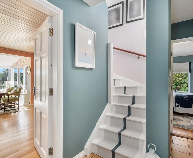 As you step through the front entrance, you’re greeted by a spacious hallway leading to the main living room, a sunlit sanctuary for relaxation featuring an elegant open fire. Adjacent to this space is the spectacular south-facing sunroom and dining room, where views of the river and gardens create an atmosphere of serenity.