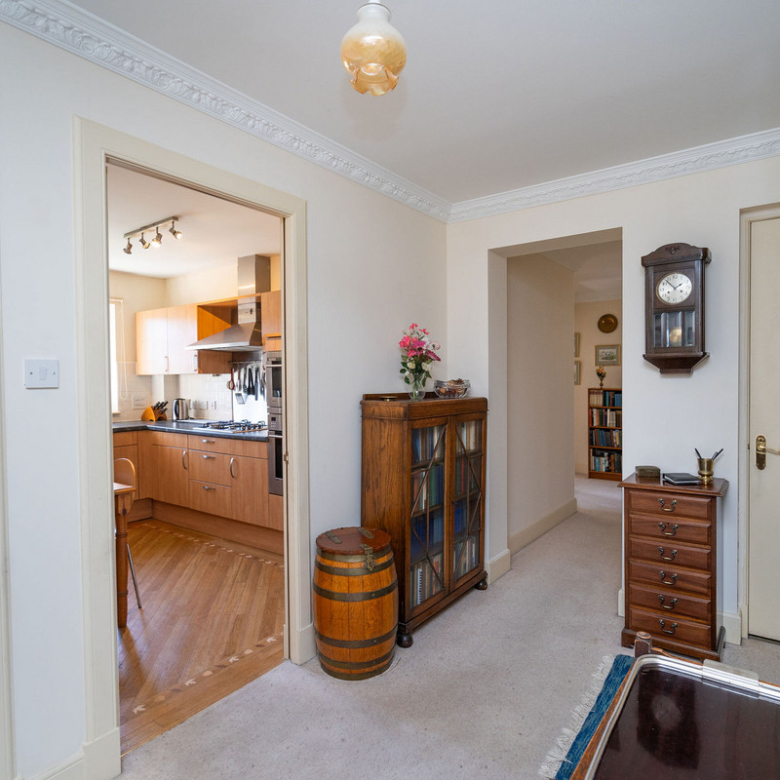 Set in landscaped grounds and benefitting from a private garage with fine views of the pentland hills, the property is accessed via a well-maintained shared entrance.