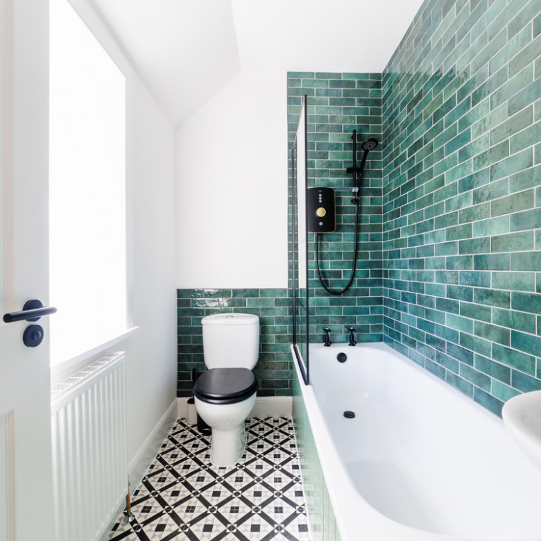 Completing the internal accommodation is a beautifully presented bathroom with a quality three-piece white suite of a bath with a wall-mounted shower, WC, and washbasin set against metro wall tiles in various green shades and exquisite floor tiles.