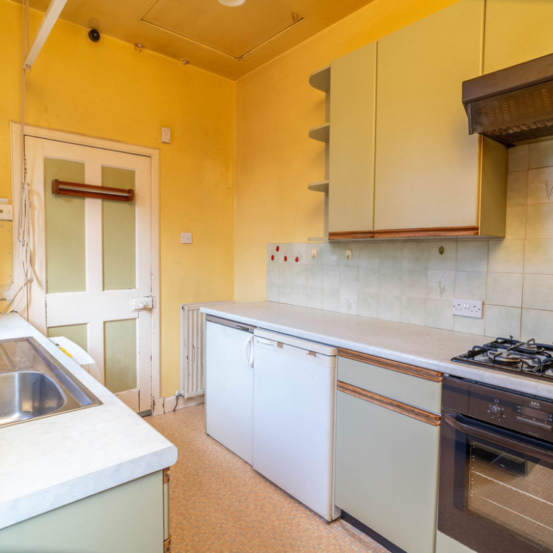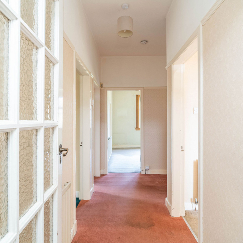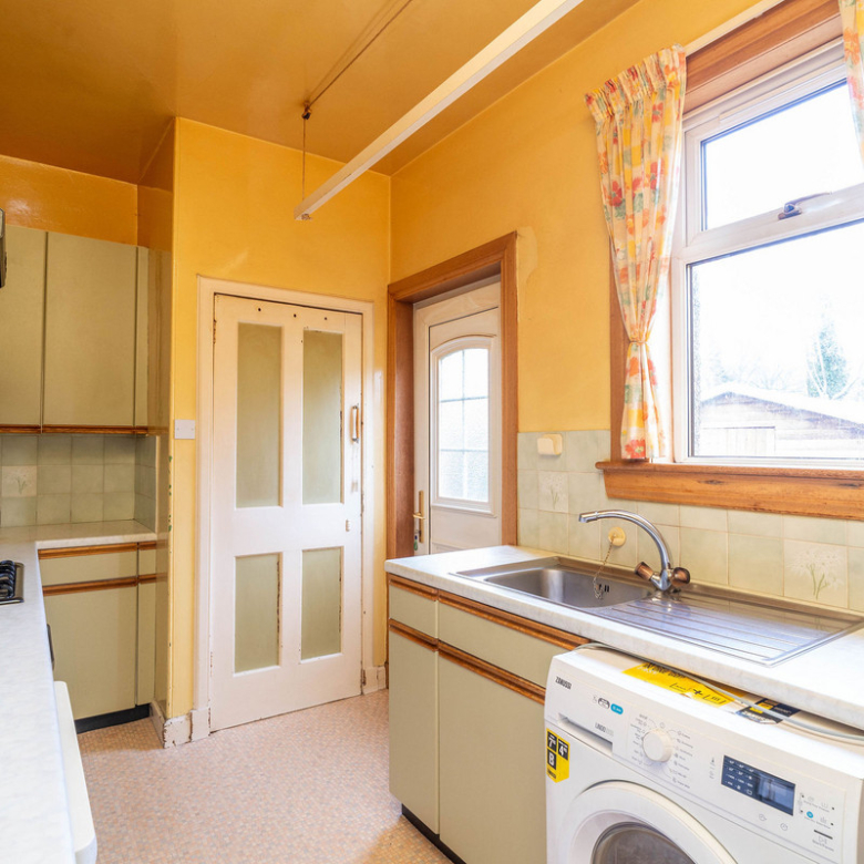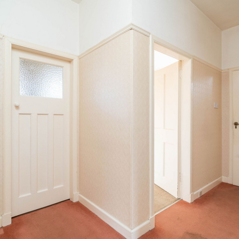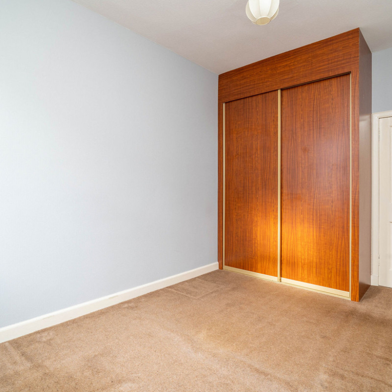 East-facing and with twin windows flooding it with natural light, the principal double bedroom boasts carpeting, an original 1930s focal fireplace and built-in shelving, whilst the remaining two bedrooms, one with built-in wardrobes provide a comfortable retreat.