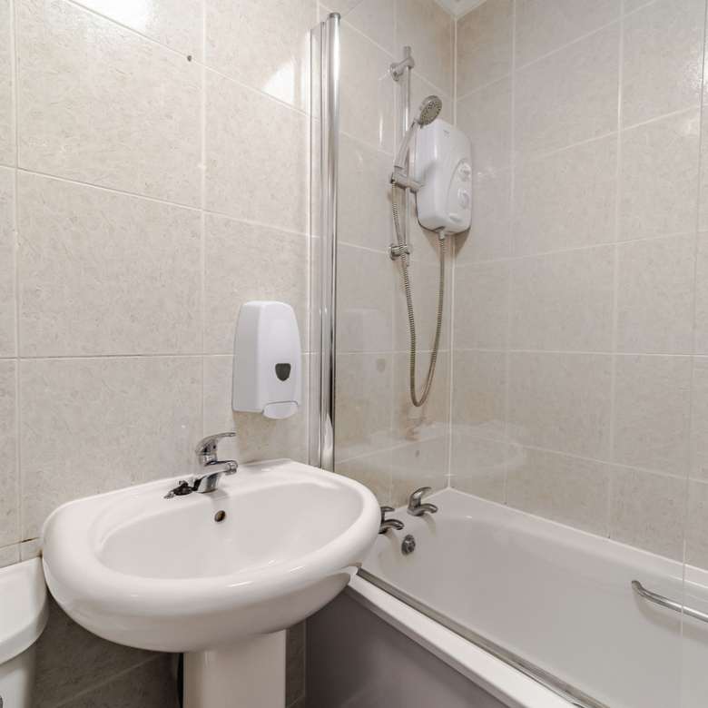 Moving from the dining/living/kitchen there are two light and airy double bedrooms both with the same sophisticated interior as the rest of the property. The larger principal double bedroom looks across South Bridge to the historic University of Edinburgh, whilst the second offers panoramic views towards Calton Hill. The third smaller south-facing single bedroom lies adjacent to the dining/living/kitchen and overlooks bustling Nicolson Street.