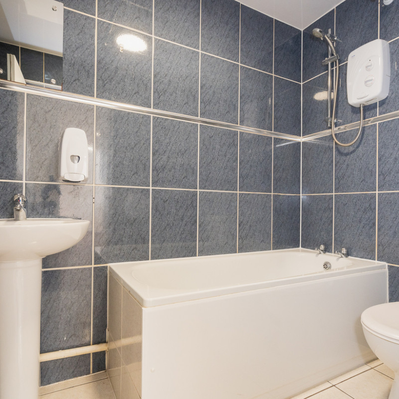The fully tiled bathroom can be found beside the kitchen/living room and involves a corner suite bath with shower and extractor fan to ensure ventilation throughout.