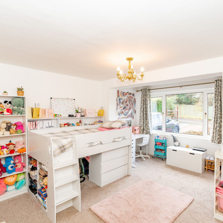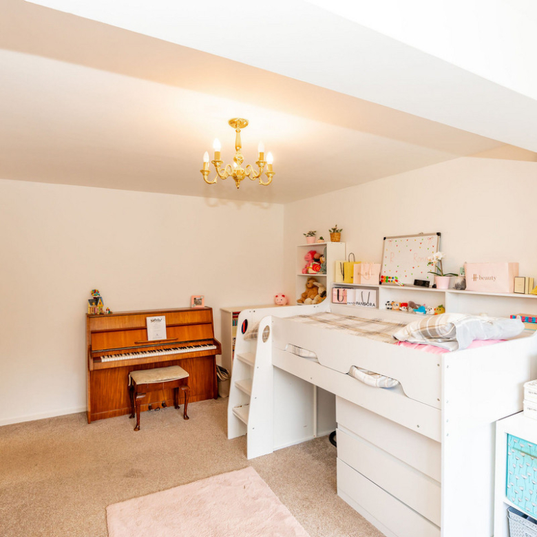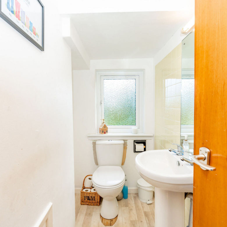 Completing the ground floor is a well-appointed guest WC and a west-facing room that is flooded with natural light and finished in a serene colour palette, currently used as a sitting room but could be used as a 5th bedroom for bigger families.