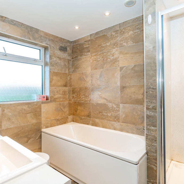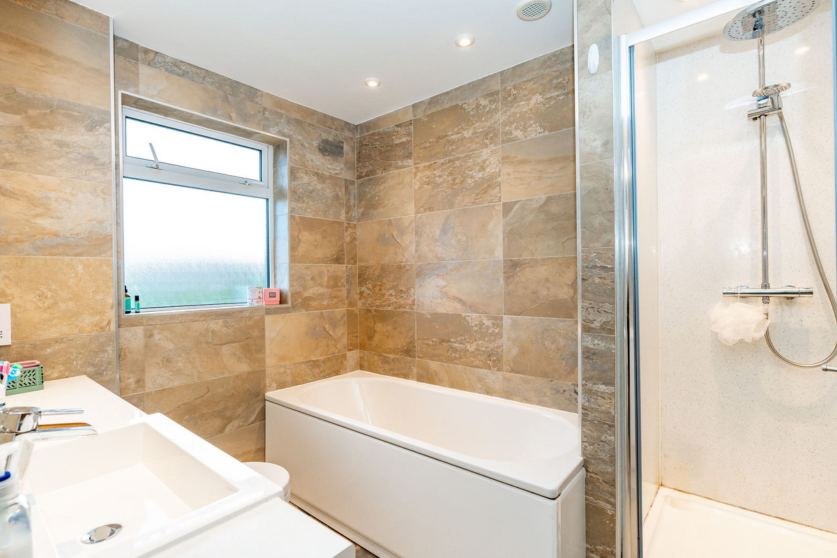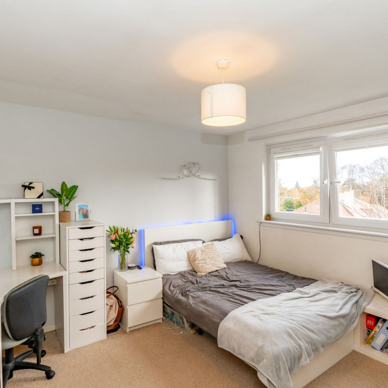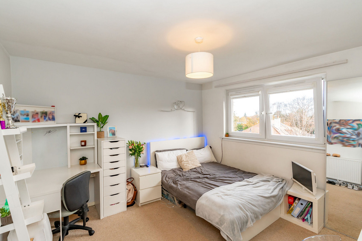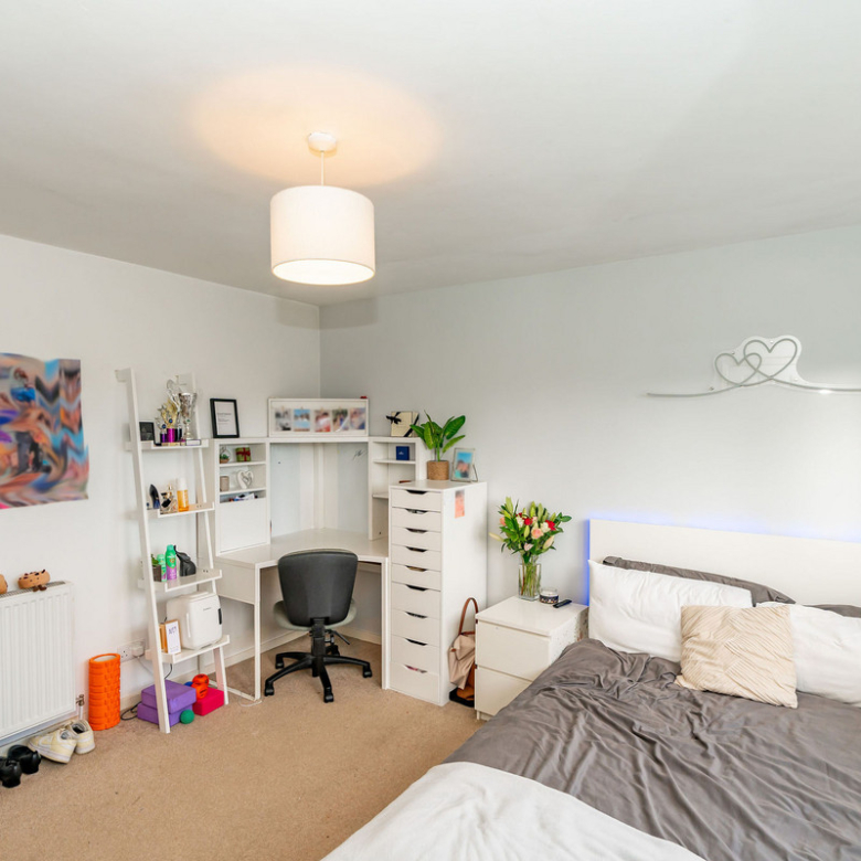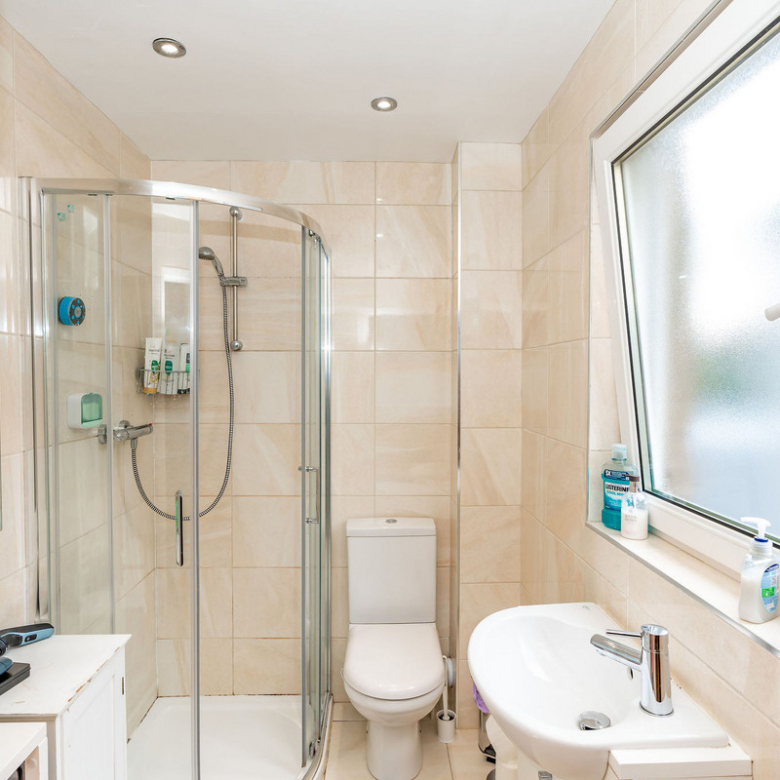 The west-facing principal double bedroom is a relaxing space that benefits from a stylish modern en-suite shower room complete with a chrome towel radiator, WC, and washbasin.