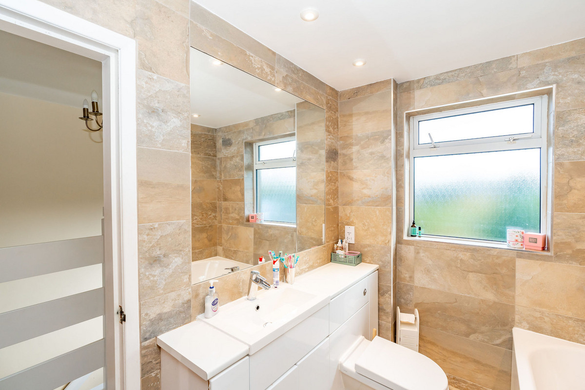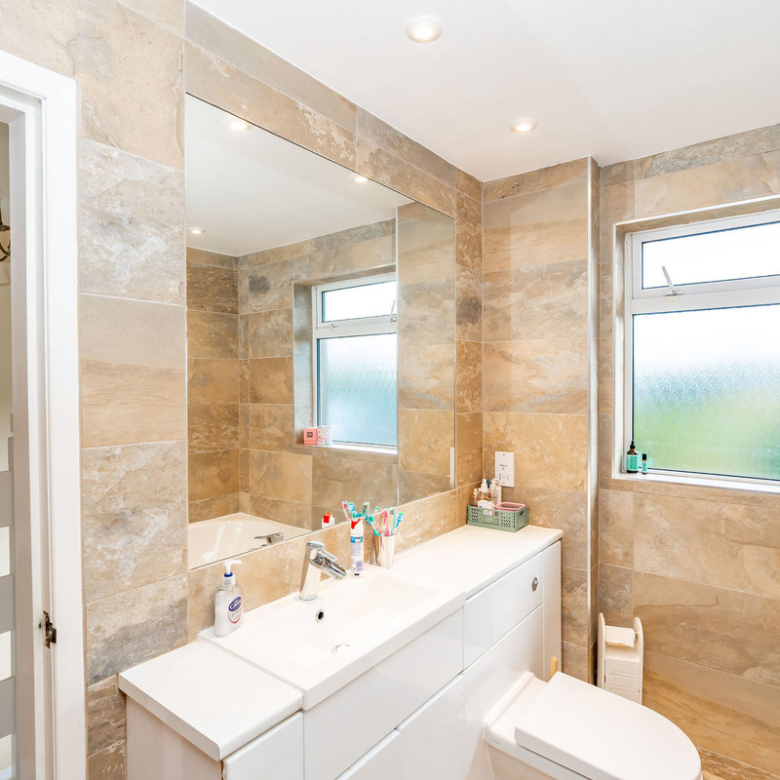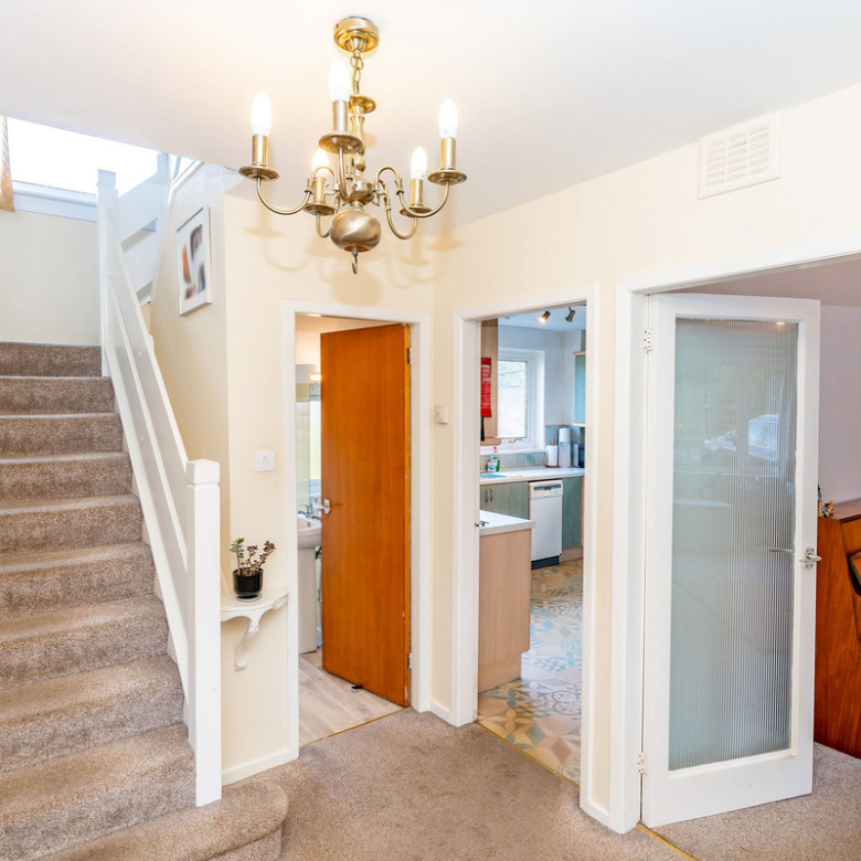 Ascending the stairs past a large portrait window, the first floor is home to four comfortable bedrooms, three double and one single. Each enjoying an appealing neutral décor, two feature built-in wardrobes and they share access to a family bathroom.