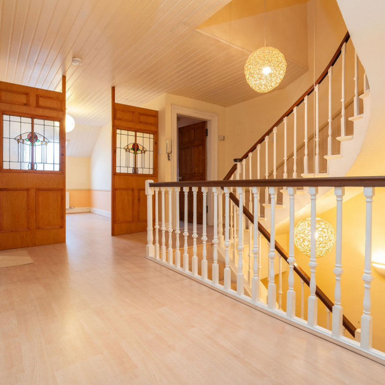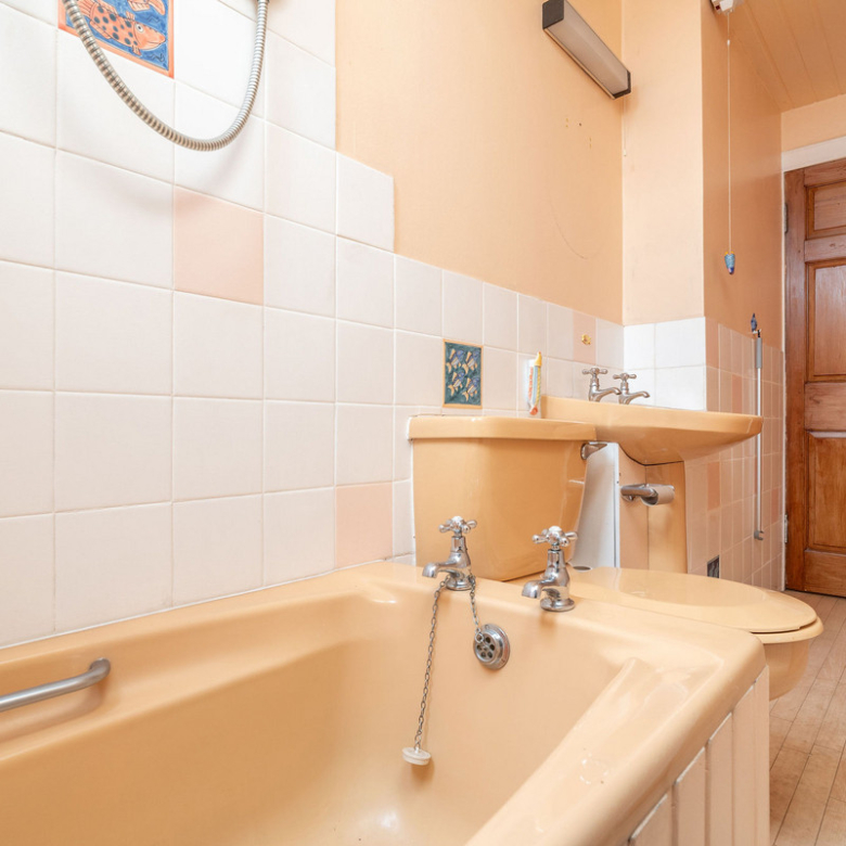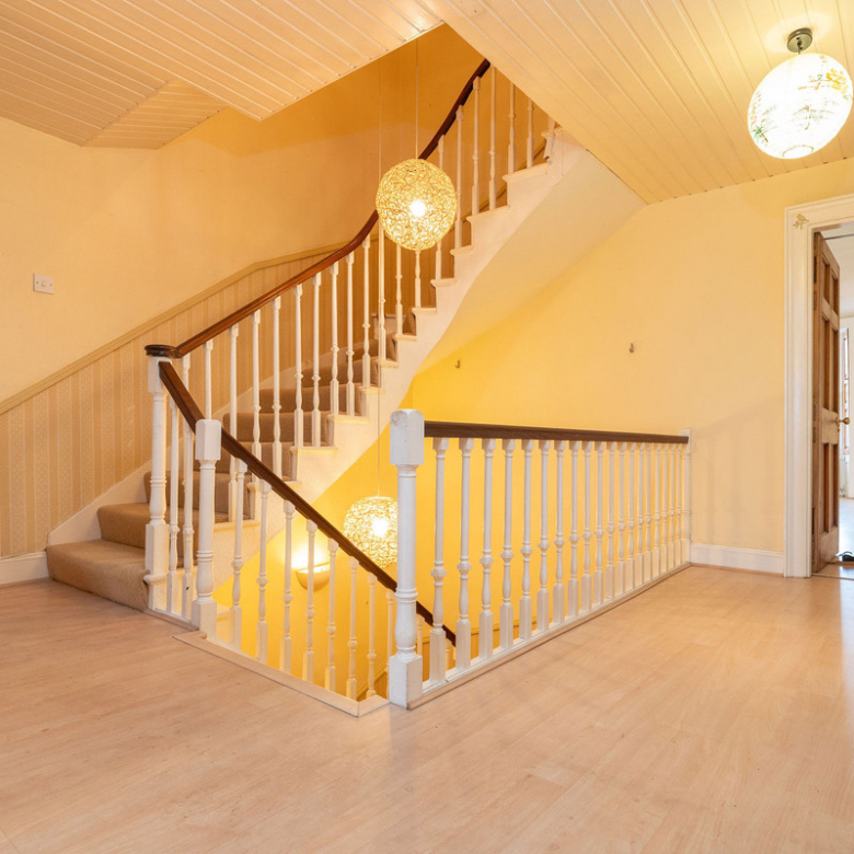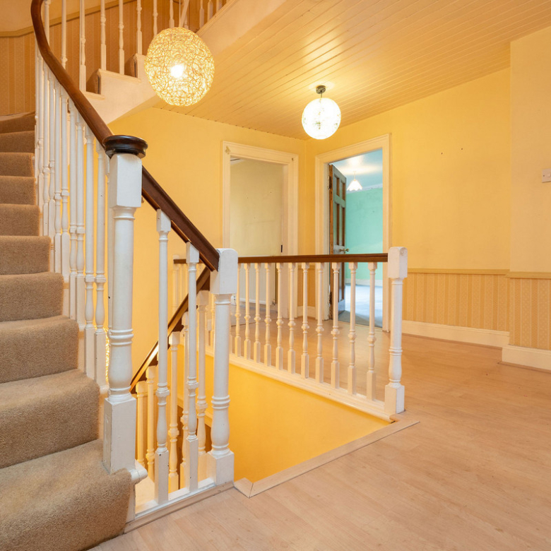 Completing the first floor is a comfortable study accessed through an exquisite stained glass partition and a family bathroom which will now benefit from a cosmetic upgrade.