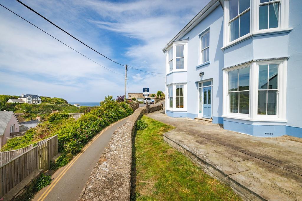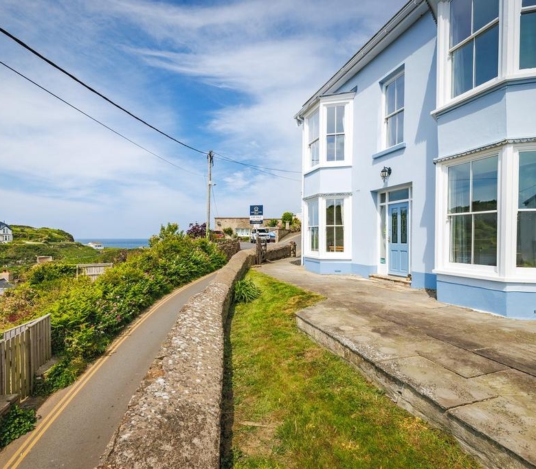 Outside, enjoy a beautifully landscaped garden with a vegetable patch, a charming stone and glass greenhouse, and a practical stone-built wood shed. The front of the property features a sun terrace and garden, along with convenient off-road parking. Thoughtfully designed patio and seating areas provide the best vantage points for those stunning sea views. This substantial property is perfect for large families or as a continuing business in a sought-after holiday destination.