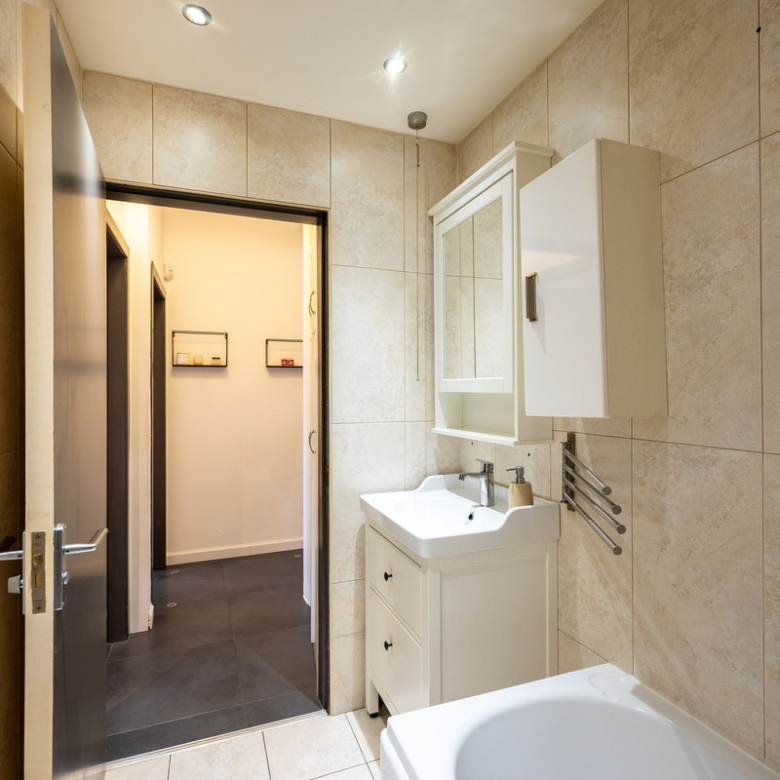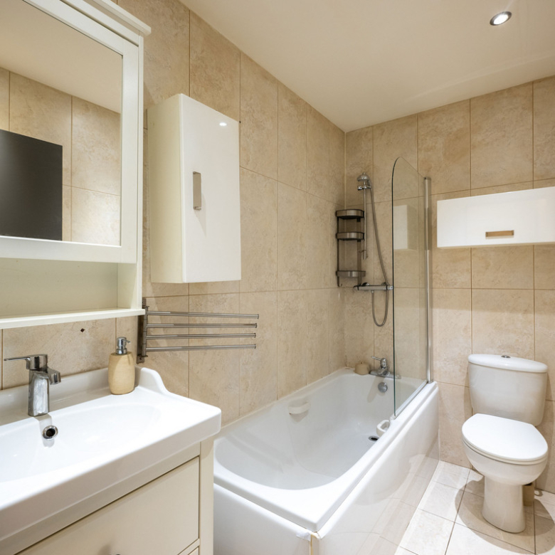 Completing this delightful flat is a stylish and functional bathroom, featuring contemporary fixtures and a bathtub/shower combination.