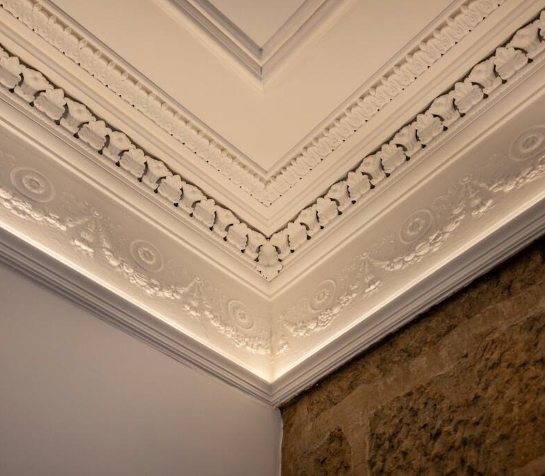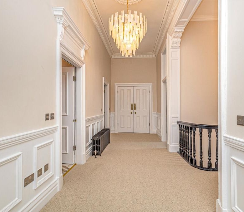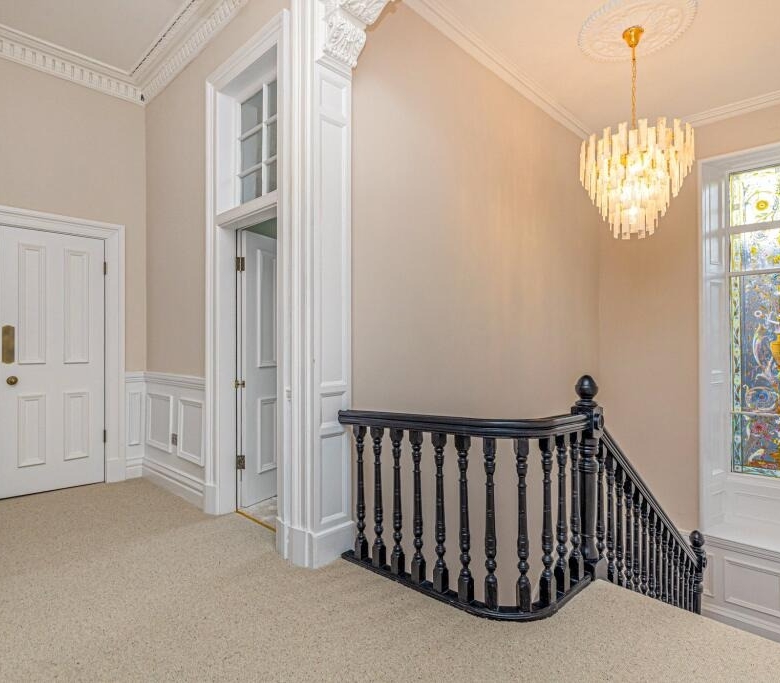 • Upper landing with generous storage, wall panelling and ornate cornicing.