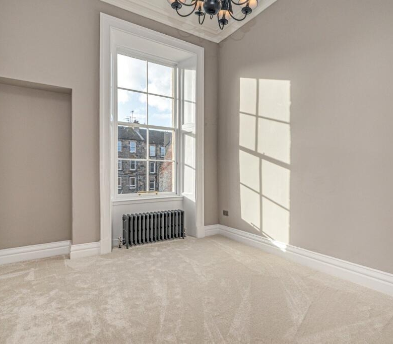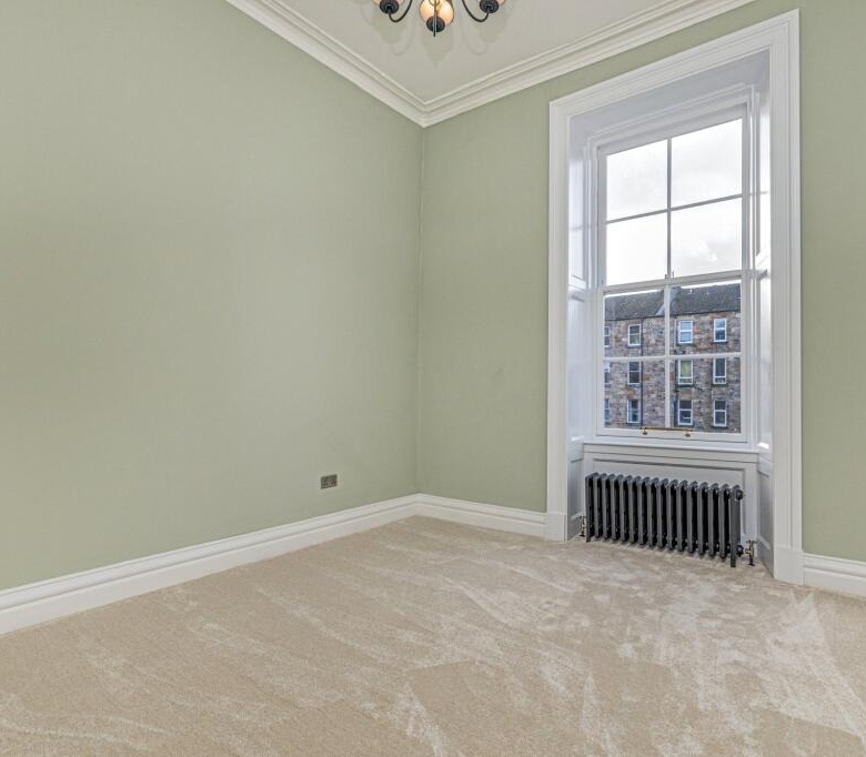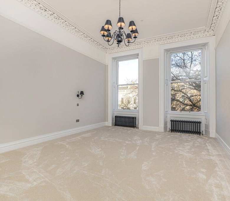 • Bedroom two, very similar in its generous size, with two windows to the front and ornate cornicing.